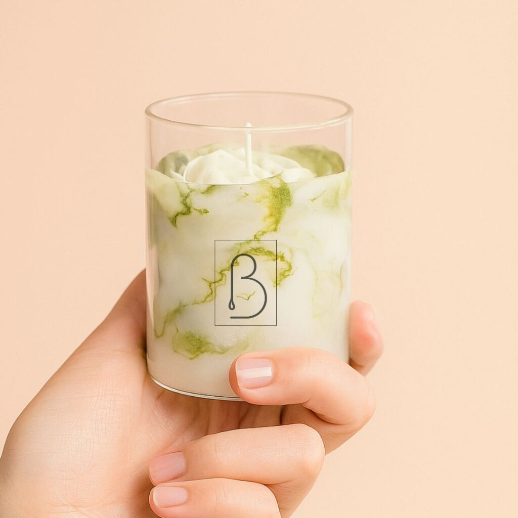 • Diseño decorativo: Efecto mármol hecho 100% de cera de soja y una flor hecha de lo mismo.